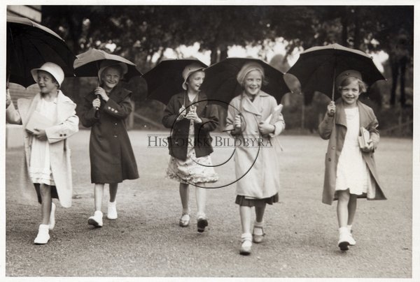 Fyra flickor på väg till examen vid folkskolornas avslutning i Malmö 15/6 1935
